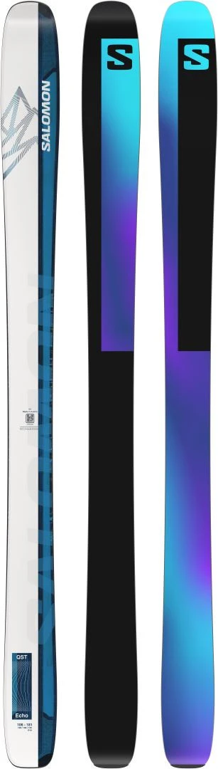 Wenn Sie jedoch gelegentlich auf der Piste ein paar Wendungen machen, ist das für den QST Echo 106 kein Problem. Der QST Echo 106 liefert beständige längere Kurven auf der Piste und kann man noch rutschend fahren. Der Salomon QST Echo 106 ist stabil, hat eine hervorragende Dämpfung und eine Rocker Konstruktion und Biegelinie die Sie optimal genießen lassen im tiefsten Gelände und trotzdem auf den Pisten eine solide Leistung bietet